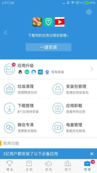 一键操作:支持应用的安装、卸载、升级,批量处理更高效;