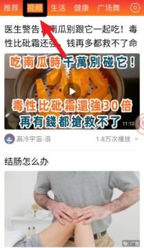 2、点击“视频”栏目可观看热门视频内容,包括健康科普、美食禁忌等话题,信息生动直观更易理解。