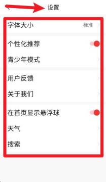 4、进入“设置”页面可自定义字体大小、开启青少年模式及调整首页悬浮球等功能,提升个性化使用体验。