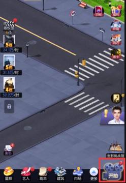 流程:开拍-选择档位-选择剧本-选择导演拍摄-选择艺人出演-选择拍摄类型-拍摄完-版权销售。
