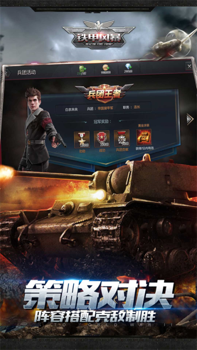 1、3D策略卡牌游戏,题材取自二战坦克战争,以收集各类传奇坦克及坦克策略搭配为核心玩法,社区化、阵营化合作与竞争为辅助手段。