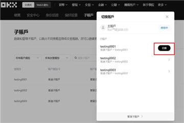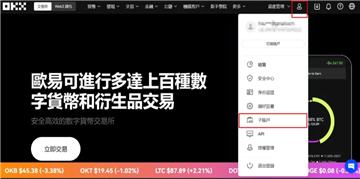 第一步:点击 OKX 主页右上角,选择子帐户