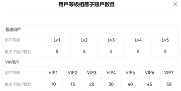 唯一需要留意的是,普通用户不论等级高低,最多只能开设 5 个子帐户。