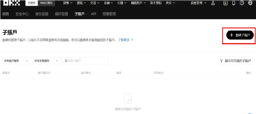 第二步:进入子帐户页面,点击右侧按钮创建子帐户