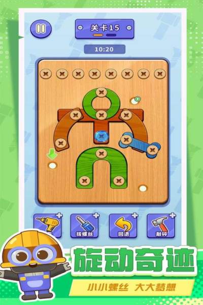 这是一款充满智慧与乐趣的解谜游戏!在这个游戏中,您将扮演一名技艺精湛的工匠,面对一个个精心设计的关卡,您的目标是通过移动螺丝解开木板,将关卡内的所有木板清除即可获得胜利。这款游戏融合了传统工艺与现代科技元素,让您在享受游戏的同时,也能感受到手工制作的魅力。