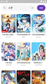 1、点击首页上方的搜索框,输入想看的漫画,点击漫画。