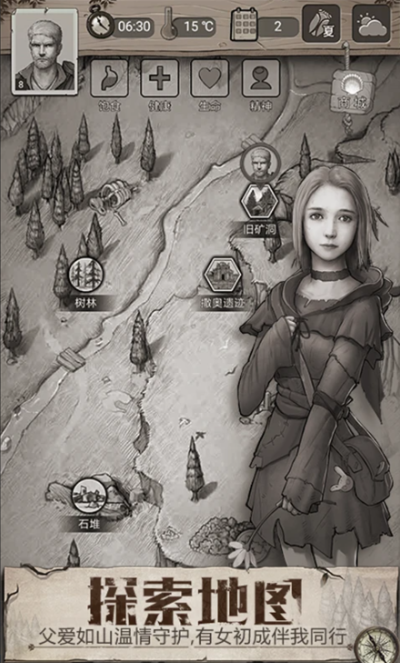 以 “寻找失踪女儿” 为核心剧情线,探索森林、雪山等场景的过程中,通过奇遇事件逐步推进故事,生存与剧情探索深度绑定;