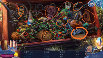 去果园,从门上拿到凿子,在鸟窝里得到烧烤夹子(两块拼成一块),回小屋,在水龙头下方用凿子得到注油器,开果园的门,得到挂锁,点开书后篮子,得到坚果钳。用烧烤夹子夹起曲柄,安上,把铁链弄到神兽旁边,用挂锁连接铁链和木板的环,把木板拖开,得到茶巾。