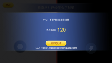 3、当前方的墙壁的时候,要小心!不要撞上去,不然游戏就会结束~