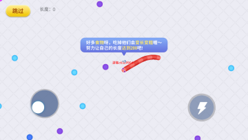 4、控制你的蛇吃掉画面中的圆点,这些圆点是食物,吃掉他们以后,蛇就会边长变粗;当然,在游戏中还会出现其他的蛇,玩家需要灵活利用加速和策略,只要让敌蛇的头部碰到你的身体,敌蛇就会死亡并留下海量“遗产”!