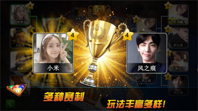 4、当熟悉了超凡台球的基本操作,便可在匹配模式、八人联赛中与对手一较高下,同时你也可以邀请好友来一场精彩的1v1较量,决出最强王者!