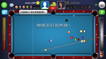 3、开局根据进球的颜色来区分你与对手的击球类型,分为双色球和全色球,为了帮助新手玩家更好的识别,挪动到对方的颜色球上会显示红色,表示不可击球;而且在玩家头像的左侧有桌上球的数字编号,每当成功击球进袋,则会显示为空白,直到将桌上属于你的台球全部进袋,即可获胜!