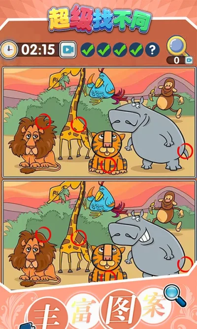 超级找不同是一款极具趣味性的休闲益智类手游,核心玩法围绕“找出两张图片差异”展开,极度考验玩家的眼力与观察力。游戏内置丰富的关卡与挑战,玩家通过精准识别图片中的不同之处完成闯关,玩法简单直观却乐趣十足。随着游玩进度推进,关卡难度逐步提升,带来满满的挑战性与成就感,适配所有喜爱休闲益智、锻炼观察力的玩家。