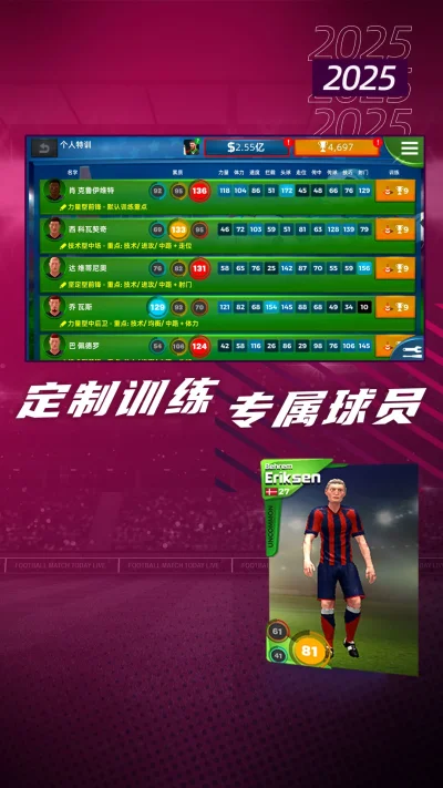 3、多元养成与战术调整:支持球员球技训练、战术灵活调整,玩家可根据球员特点与赛事需求优化阵容配置,打造极具竞争力的球队。