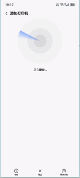 2、点击“添加”按钮,系统自动搜索可连接的打印机;若搜索失败,可查看帮助或热点直连。