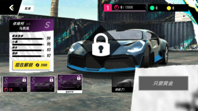 2、在“车库”中,有超多车辆供玩家解锁使用,每辆车的属性都不相同,级别越高车辆越好。