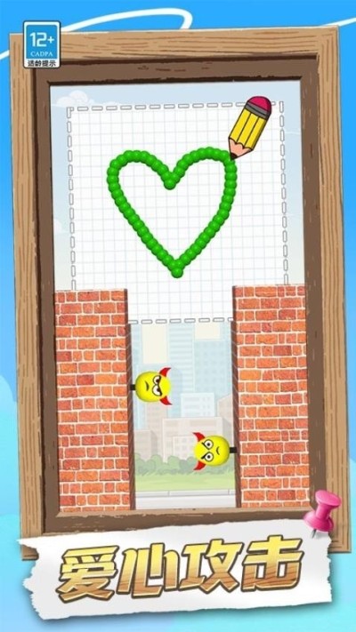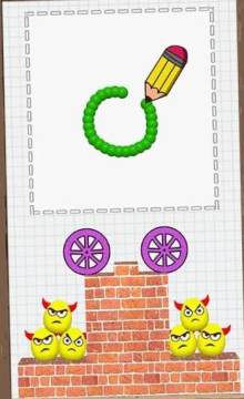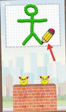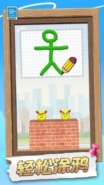 2、进入【轻松涂鸦】,用铅笔绘制绿色小人,覆盖敌人上方区域,利用涂鸦阻挡敌人,顺利通关。
