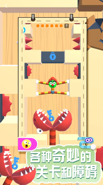我脖子特长是一款以弹性橡皮人为核心角色的休闲物理解谜手游。游戏以独特的弹性物理机制为核心玩法,玩家可操控橡皮人自由伸缩四肢,完成抓取、攀爬、弹射等多样动作,破解融合场景互动与动态障碍的关卡谜题。游戏内置弹簧鞋、粘性手套等实用道具,助力玩家解锁多元解法;同时拥有精美画面与生动的橡皮人表情反馈,兼顾休闲趣味与解谜挑战,是创意解谜类游戏中的特色之作。
