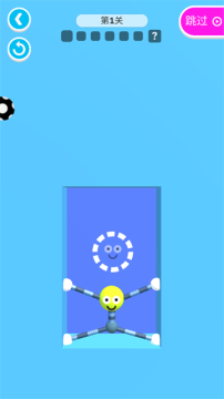 3:在关卡中,操控黄色小人角色(通过界面按键)完成动作(如伸展肢体),达成关卡目标;也可点击“跳过”快速结束当前环节。