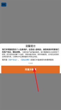 1:打开游戏后,阅读《用户协议》《隐私政策》,点击“同意并继续”按钮,完成权限确认,进入游戏。