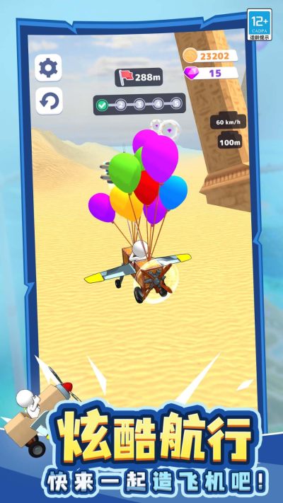 1、简单的游戏操作,对组件飞机进行合成升级,就可以飞向更远的远方!