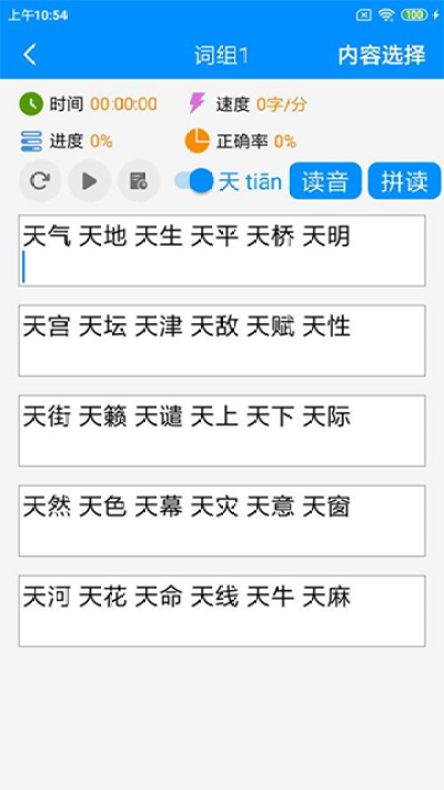 拼音打字练习是一款专注于拼音打字学习的专项工具,核心价值在于帮助用户快速熟悉拼音输入逻辑,同时深化汉字与拼音的对应认知。软件通过科学划分的阶梯式练习环节,让不同基础的用户都能高效提升打字熟练度,实现拼音输入从生疏到流畅的转变。