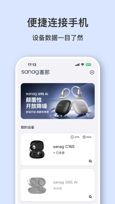 sanag耳机app下载2026安卓版是专为塞那蓝牙耳机量身打造的智能管理平台,整合云端生态链与多元增值服务,结合固件升级机制持续优化性能,为用户提供全生命周期的智能音频服务解决方案。