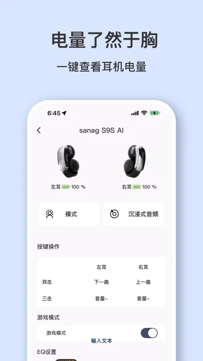 3、直观状态监控:首页清晰展示耳机电量、连接状态等关键信息,设备情况一目了然,方便及时掌握