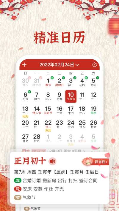 1、适合中国人的万年历、农历、黄历、查宜忌、看天气、节气、生日提醒等。