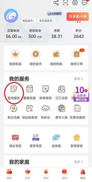 2、在我的页面中,用户可查看我的服务,我的家庭和特色业务功能板块,用户可在我的服务栏下点击视频客服,或者点击右上角的电话客服和消息按钮;