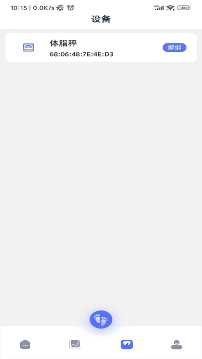 1、绑定设备:APP将体脂秤设备进行一键绑定,将体脂秤设备绑定连接后可采集测量数据。