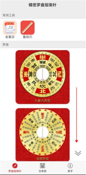 2、实用工具集成:除核心罗盘功能外,内置万年历、老黄历、鲁班尺等实用工具,无需额外下载其他软件,一站式满足民俗查询、尺寸参考等附加需求。