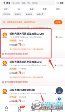 3、登录后,点击 “油气站”,查看附近加油站列表,挑选合适的加油站。