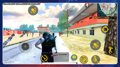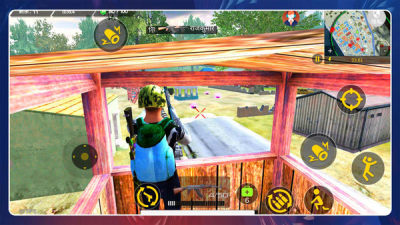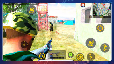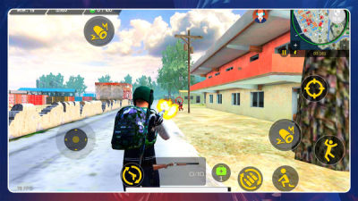 4、左侧轮盘控制移动,右侧控制奔跑跳跃瞄准射击,击杀敌人还能舔包。