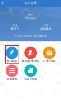 员在手机端登录【山东通】,打开【工作台】-【政协在线】,点击‘市县自建’【提案一键通】,打开提案系统