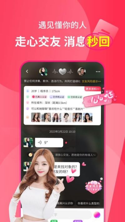严格的真人实名制审核机制,确保每一位用户的真实性,营造安全可靠的交友环境。