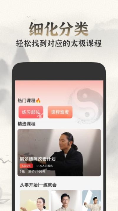 下载太极学堂APP后打开,即可开始探索各种太极课程。