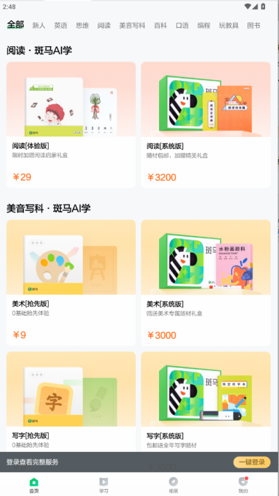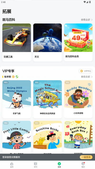 完整覆盖阅读、思维、英语等核心学科,无需切换多个学习工具,一个软件即可满足少儿多维度启蒙学习需求。