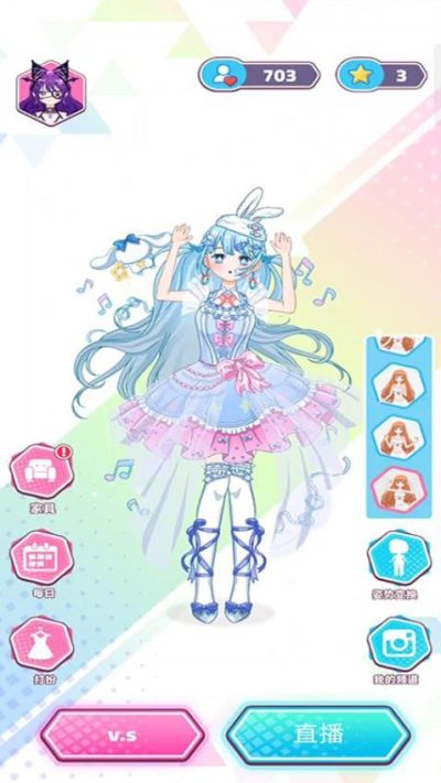 2、通过直播和社交功能与其他玩家互动,这样可以获取更多的资源和灵感,尤其是查看其他人的直播形象可以获取丰富的灵感。