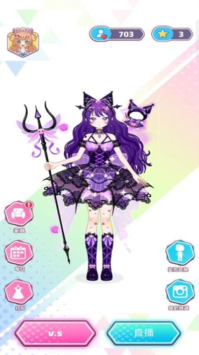1、可以自由选择各种服装和配饰,打造属于自己的独特造型。