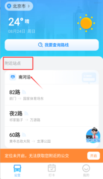 1、打开app后先开启定位权限,系统会自动显示你附近的公交站点和线路信息,还能看到最近车辆的预计到达时间。