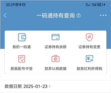 1、进入中国结算App后点击左上角“一码通资产查询”。