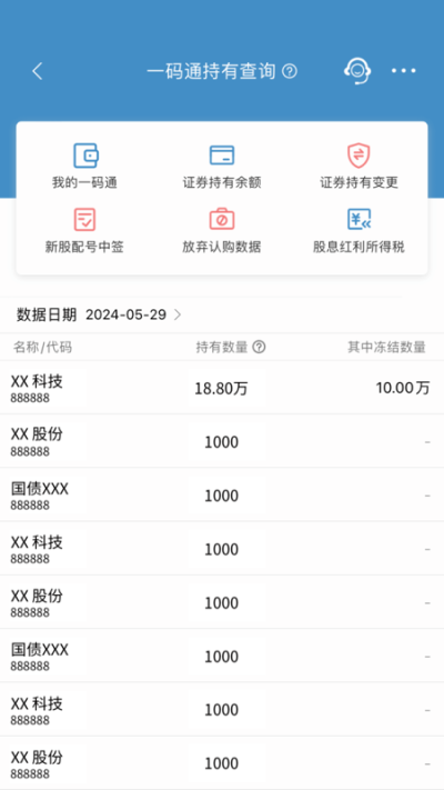 3、投资者持仓查询、资产变动查询、新股中签查询。