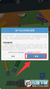 1、点击用户协议和隐私政策里的同意并进入。