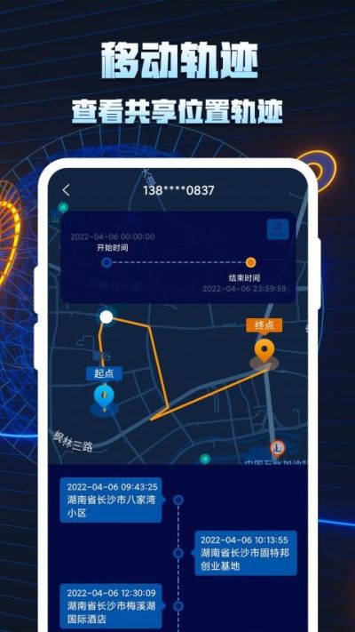 用户可以在软件上进行亲友的移动轨迹查询,了解TA去过哪。