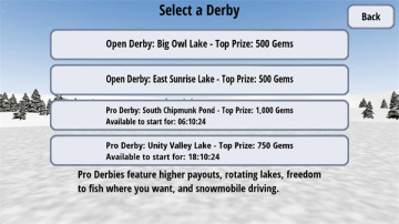 3、专业赛 – 解锁专业模式,前往更多湖泊,垂钓更多种类的鱼类。你将拥有更多资金,获得更高级的装备,并驾驶雪地摩托探索湖面,选择自己心仪的钓点。