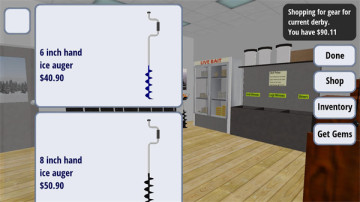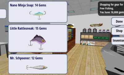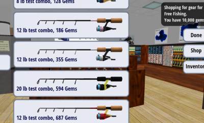 3、选好地点后需要去购买装备,点击shop按钮来购买不同的钓鱼装备。