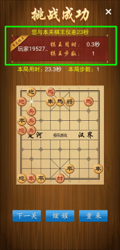 5、最终玩家获得了胜利,其实这一关挺简单,很多棋子只是障眼法,绿色方框内的区域可以显示出玩家玩一盘棋局的详细信息;
