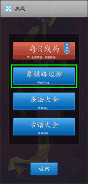 2、在挑战界面选择并点击“象棋路边摊”的按钮选项,进入残局挑战界面;