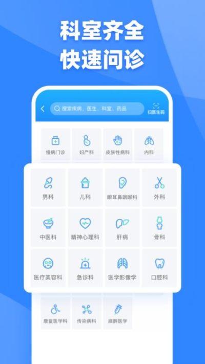 智能搜索:提供病症、药品、问题及资讯的搜索服务,帮助用户快速找到所需信息。